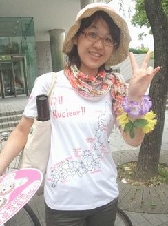 主体的にメーデーに参加しデコレーション着ぐるみ部門優秀賞ゲット。「原発NO!組合に廃炉~」自作Tシャツです。