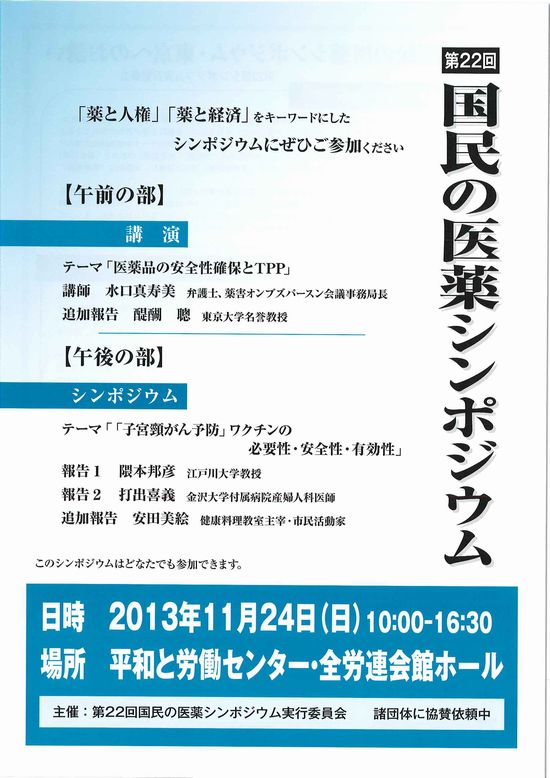 【13.10.18】第22回 国民の医薬シンポジウムのご案内