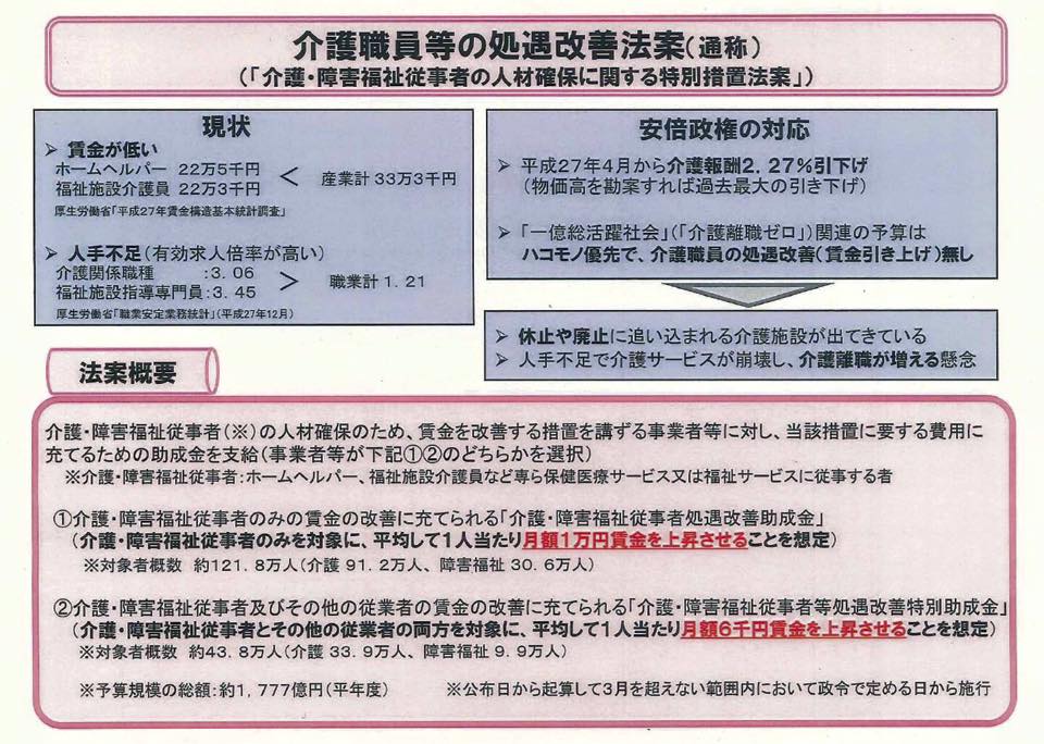 2016春闘速報2 介護賃上げに追い風 介護賃上げ法案出る!