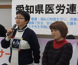 大会には日本医労連から中野千香子中央執行委員長、愛労連から榑松佐一議長が来賓として挨拶、日本共産党愛知県委員会と新社会党から4月23日名古屋市長選挙を前にして革新県政の会の西村秀一さんを迎えて名古屋市制の学習を行いました。