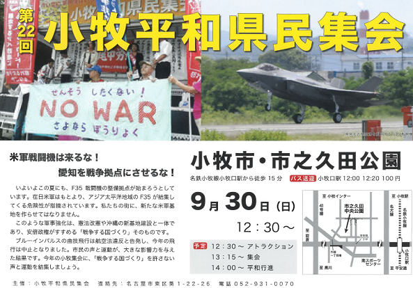 【18.09.21】9.30(日)第22回 小牧平和県民集会のご案内