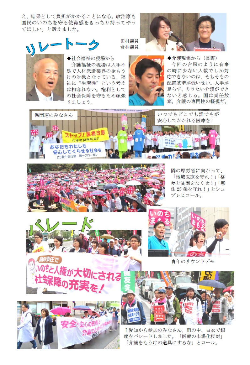 19秋闘速報⑩ 医療・介護・福祉・教育など国の責任で社会保障の充実を!