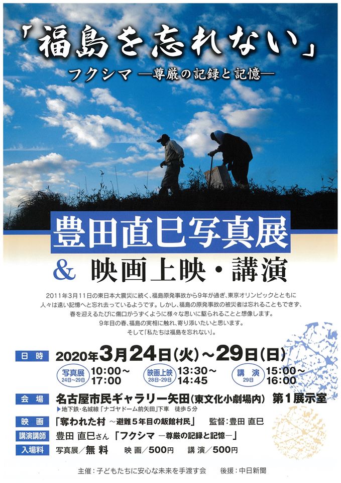 ※中止となりました 3.24(火)~29(日) 『福島を忘れない』豊田直巳写真展&映画上映・講演